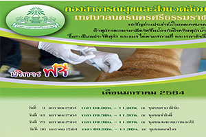 | เทศบาลนครนครศรีธรรมราช กำหนดบริการออกหน่วยจัดทำทะเบียน ประวัติสุนัขและแมว ฉีดวัคซีนป้องกันโรคพิษสุนัขบ้า ประจำเดือน มกราคม 2564 |