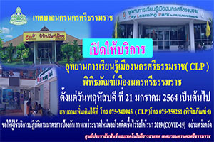 | เทศบาลนครนครศรีธรรมราช โดยกองวิชาการและแผนงาน ประกาศเปิดให้บริการ อุทยานการเรียนรู้เมืองนครศรีธรรมราช( CLP ) และพิพิธภัณฑ์เมืองนครศรีธรรมราช |