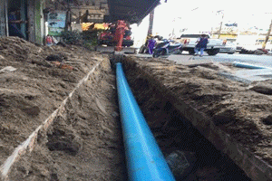 | เทศบาลนครนครศรีธรรมราช ดำเนินการวางท่อเมนประปา (ท่อเมนรอง) ชนิด PVC ขนาดเส้นผ่าศูนย์กลาง 4 นิ้ว บริเวณจากสามแยกท่าด่าน ถนนท่าโพธิ์ ถึง คอสะพานหน้าเมืองหลังจวนผู้ว่า ถ.ศรีปราชญ์ พร้อมประสานเข้ามาตรวัดน้ำ ตำบลท่าวัง และตำบลคลัง อำเภอเมือง จังหวัดนครศรีธรรมราช |