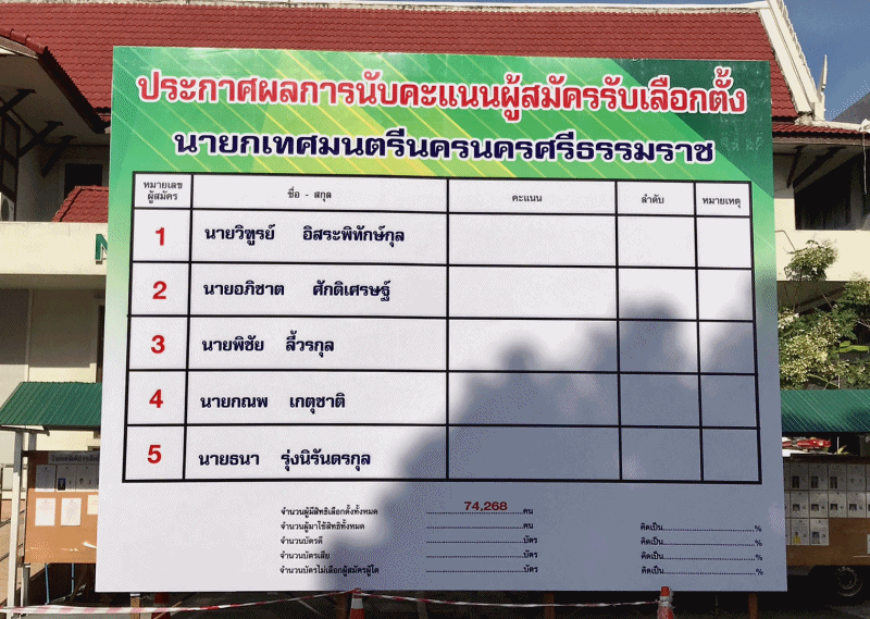 | เทศบาลนครนครศรีธรรมราช แจ้งการติดตามการรายงานผลนับคะแนนเลือกตั้งสมาชิกสภาเทศบาลนครนครศรีธรรมราช และนายกเทศบาลมนตรีนครนครศรีธรรมราช อย่างไม่เป็นทางการ หลังปิดหีบเลือกตั้ง ในวันอาทิตย์ ที่ 28 มีนาคม 2564 |