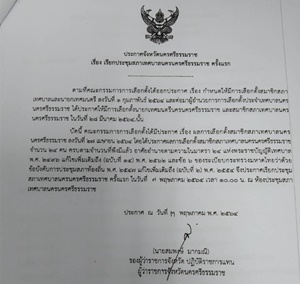 | ผู้ว่าราชการจังหวัดนครศรีธรรมราช เรียกประชุมสภาเทศบาลนครนครศรีธรรมราช ครั้งแรก |