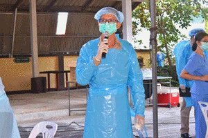 | วันจันทร์ ที่17 พฤษภาคม พ.ศ.2564   ดร.กณพ เกตุชาติ นายกเทศมนตรีนครนครศรีธรรมราช พร้อมด้วยผู้บริหาร หัวหน้าส่วนราชการ ลงพื้นที่บริเวณวัดหัวอิฐ ซึ่งในวันนี้ได้รับเกียรติจาก นายไกรศร วิศิษฎ์วงศ์ ผู้ว่าราชการจังหวัดนครศรีธรรมราช และ แพทย์หญิงศิริลักษณ์  ไทยเจริญ ผู้อำนวยการสำนักงานป้องกันควบคุมโรคที่ 11  นายแพทย์ทรงเกียรติ  เล็กตระกูล ผู้อำนวยการโรงพยาบาลมหาราช รองนายแพทย์สาธารณสุขจังหวัดนครศรีธรรมราช นายอำเภอเมืองนครศรีธรรมราช ลงพื้นที่ตรวจติดตาม และให้กำลังใจเจ้าหน้าที่ผู้ปฏิบัติงานการตรวจหาเชื้อไวรัสโคโรนา-2019 เชิงรุกให้แก่พ่อค้าแม่ค้าตลาดหัวอิฐ ตลาดพืชผล และตลาดบัวตอง ณ วัดหัวอิฐ ถ.กะโรม ต.โพธิ์เสด็จ อ.เมืองนครศรีธรรมราช โดยมีเป้าหมาย 1,000 คน ขณะเดียวกันกรมควบคุมโรคโดยสำนักงานป้องกันควบคุมโรคที่ 11 นครศรีธรรมราช ได้นำรถพระราชทานเก็บตัวอย่างชีวนิรภัย จำนวน 1 คัน เก็บตัวอย่างเชื้อผู้ที่สัมผัสเสี่ยงสูง จำนวน 50 คน โดยมีการแยกบุคคลผู้สัมผัสเสี่ยงสูง และผู้สัมผัสเสี่ยงทั่วไปออกจากกันอย่างชัดเจน โดยผู้สัมผัสเสี่ยงสูงหลังเก็บตัวอย่างเชื้อแล้วจะต้องถูกนำตัวไปกักกันที่ Local Quarantine เป็นเวลา 14 วัน เพื่อเฝ้าสังเกตอาการและเก็บตัวอย่างตรวจเชื้อซ้ำ ส่วนผู้ที่ผลตรวจเป็นบวก เจ้าหน้าที่จะนำตัวไปรักษาในโรงพยาบาลทันที  |