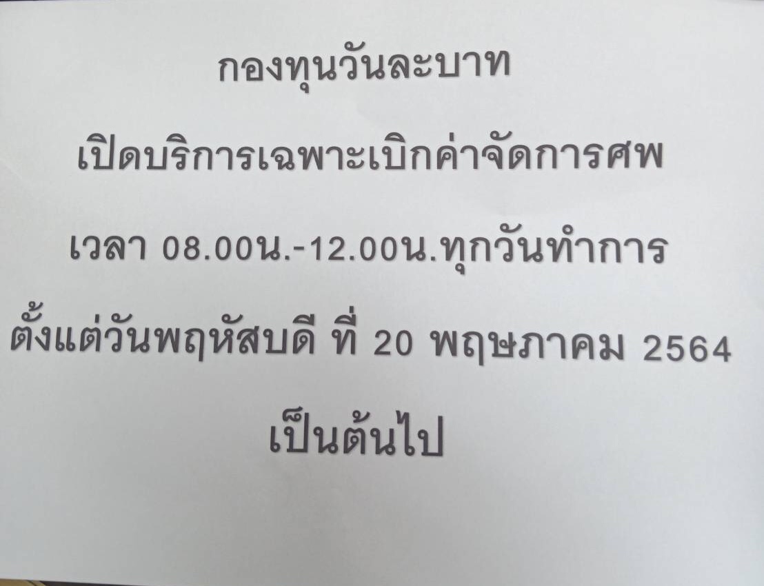 | เทศบาลนครนครศรีธรรมราช โดยกองทุนสวัสดิการชุมชน(กองทุนวันละบาท) กองสวัสดิการสังคม เปิดบริการเฉพาะเบิกค่าจัดการศพ ตั้งแต่บัดนี้เป็นต้นไป |