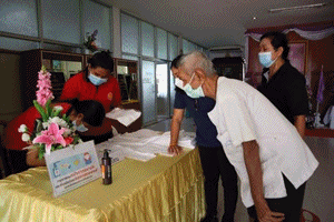 | ดร.กณพ เกตุชาติ นายกเทศมนตรีนครนครศรีธรรมราช ประธานเปิดโครงการนั่งสามล้อกินลม ชมสวนสมเด็จฯ และกิจกรรมเสริมสร้างความเข้มแข็งและอนุรักษ์สามล้อถีบเมืองคอน |