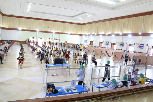 | เทศบาลนครนครศรีธรรมราช ให้บริการฉีดวัคซีนป้องกันโรคโควิด-19 วันพุธ ที่ 7 กรกฎาคม 2564 ตั้งแต่เวลา 08.30 -16.30 น. ณ หอประชุมเมือง ( ทุ่งท่าลาด ) ดร.กณพ เกตุชาติ นายกเทศมนตรีนครนครศรีธรรมราช มอบหมายให้ กองการแพทย์โรงพยาบาลเทศบาลนครนครศรีธรรมราช ดำเนินการฉีดวัคซีนป้องกันโรคโควิด-19 สำหรับผู้มีนัดฉีดวัคซีนในวันที่ 24-28 มิถุนายน 2564 และผู้ฉีดวัคซีนเข็มที่ 2 ที่มีนัดฉีดระหว่างวันที่ 5-12 กรกฎาคม 2564 ภาพ//ข่าว//แสงจันทร์ |