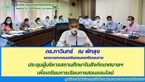 | วันอังคาร ที่ 20 กรกฎาคม 2564 เวลา 10.30 น. ณ ห้องประชุมชั้น 2 สำนักงานเทศบาลนครนครศรีธรรมราช นายภาวินทร์ ณ พัทลุง รองนายกเทศมนตรีนครนครศรีธรรมราช เป็นประธานการประชุมผู้อำนวยการสถานศึกษาโรงเรียนในสังกัดเทศบาลนครนครศรีธรรมราช เพื่อเตรียมความพร้อมในการสอนออนไลน์ให้แก่นักเรียนในสถานการณ์การแพร่ระบาดของโรคติดเชื้อไวรัสโคโรนา 2019 (COVID-19) ทั้งนี้เพื่อควบคุมป้องกัน การแพร่ระบาดของของโรคติดเชื้อไวรัสโคโรนา 2019 (COVID-19)