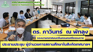 | วันพฤหัสบดี ที่ 22 กรกฎาคม 2564 เวลา 09.00 น. ณ ห้องประชุมชั้น 4 สำนักการศึกษา เทศบาลนครนครศรีธรรมราช นายภาวินทร์ ณ พัทลุง รองนายกเทศมนตรีนครนครศรีธรรมราช เป็นประธานการประชุมผู้อำนวยการสถานศึกษาโรงเรียนในสังกัดเทศบาลนครนครศรีธรรมราช เพื่อเตรียมความพร้อมในการสอนออนไลน์ให้แก่นักเรียนในสถานการณ์การแพร่ระบาดของโรคติดเชื้อไวรัสโคโรนา 2019 โดยมีการสำรวจจุดกระจายสัญญาณ Internet ภายในสถานศึกษา และมีการวัด ประเมินคุณภาพผู้เรียนตามหลักสูตรแกนกลางการศึกษาขั้นพื้นฐาน ภายใต้สถานการณ์ การแพร่ระบาดของโรคติดเชื้อไวรัสโคโรนา 2019
