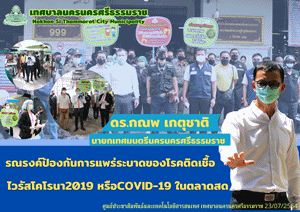 | วันศุกร์ ที่ 23 กรกฎาคม 2564 เวลา 09.00 น. ณ ตลาดสดเทศบาลนครนครศรีธรรมราช และ ตลาดนัดข้างศาลากลางจังหวัดนครนครศรีธรรมราชดร.กณพ เกตุชาติ นายกเทศมนตรีนครนครศรีธรรมราช มอบหมายให้กองสาธารณสุขและสิ่งแวดล้อม ร่วมกับงานเทศกิจ ลงพื้นที่รณรงค์เกี่ยวกับการป้องกัน การแพร่ระบาดของโรคติดเชื้อไวรัสโคโรนา 2019 ในตลาดสดเทศบาลนครนครศรีธรรมราช (ตลาดคูขวาง) และตลาดนัดข้างศาลากลาง เพื่อให้พ่อค้าแม่ค้า และประชาชนตระหนักถึงการป้องกัน ยับยั้ง การแพร่ระบาดของโรคติดเชื้อไวรัสโคโรนา 2019