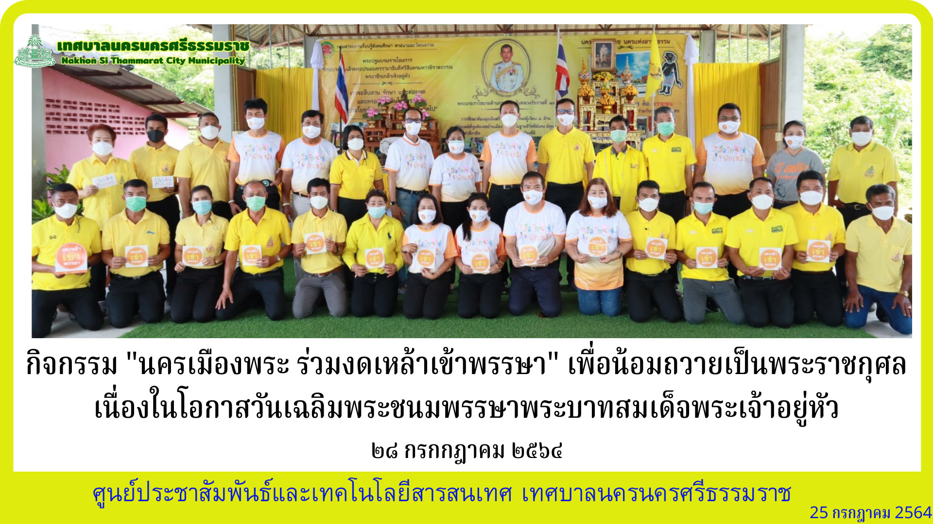 | ดร.กณพ เกตุชาติ นายกเทศมนตรีนครนครศรีธรรมราช ร่วมพิธีเปิดกิจกรรม " นครเมืองพระ ร่วมงดเหล้าเข้าพรรษา " เพื่อน้อมถวายเป็นพระราชกุศล เนื่องในโอกาสวันเฉลิมพระชนมพรรษาพระบาทสมเด็จพระเจ้าอยู่หัว 28 กรกฎาคม 2564 |