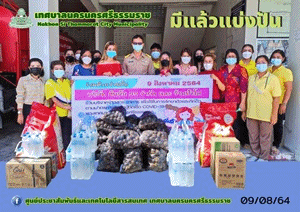 | วันจันทร์ ที่9 สิงหาคม  2564 ดร.กณพ เกตุชาติ นายกเทศมนตรีนครนครศรีธรรมราช พร้อมด้วยผู้บริหาร หัวหน้าส่วนราชการ รับมอบเครื่องบริโภค  ข้าวสาร น้ำดื่ม และมังคุด  จาก บริษัท ฮันนัน 99 จำกัด และ ร้านป้าโส   เพื่อนำไปแจกจ่ายให้แก่ชาวบ้าน ช่วยเหลือผู้ได้รับผลกระทบจากพิษโควิด -19  ตามโครงการจิตอาสา ทำความดี มีแล้วแบ่งปัน   |