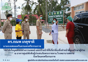 | นายกเทศมนตรีนครนครศรีธรรมราช ลงพื้นที่ให้กำลังใจบุคลากรทางการแพทย์ และเจ้าหน้าที่ที่เกี่ยวข้องซึ่งทำหน้าที่ดูแลรักษาผู้ป่วย ณ อาคารศูนย์พักพิงผู้ประสบภัยพระราชทาน |