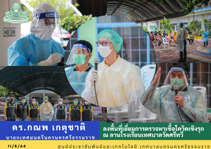 | วันที่ 11 สิงหาคม 2564 เวลา 09.30 น. ดร.กณพ เกตุชาติ นายกเทศมนตรีนครนครศรีธรรมราช พร้อมด้วย คณะผู้บริหาร สมาชิกสภาเทศบาลนครนครศรีธรรมราชและหัวหน้าส่วนราชการ ลงพื้นที่ให้กำลังใจเจ้าหน้าที่บุคลากรทางการแพทย์ และเจ้าหน้าที่เทศบาลที่ปฎิบัติงาน ในการตรวจหาเชื้อไวรัสโคโรนา 2019 (COVID-19) ณ บริเวณโรงเรียนเทศบาลวัดศรีทวี ทั้งนี้ เทศบาลนครนครศรีธรรมราช ร่วมกับ สาธารณสุขจังหวัดนครศรีธรรมราช ลงพื้นที่ บริเวณโรงเรียนเทศบาลวัดศรีทวี เพื่อตรวจหาผู้ติดเชื้อเชิงรุก ให้แก่ ประชาชนชุมชนหน้าสถานีรถไฟ หลังพบผู้ติดเชื้อ |