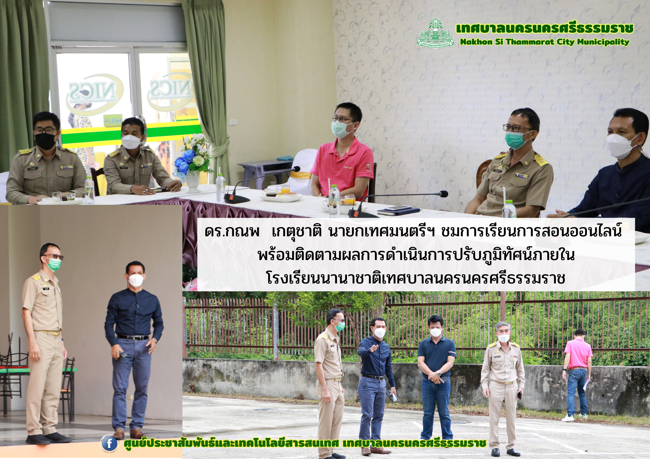 | นายกเทศมนตรีนครนครศรีธรรมราช เข้ารับชมการเรียนการสอนออนไลน์ พร้อมติดตามผลการดำเนินการปรับภูมิทัศน์ภายในโรงเรียนนานาชาติเทศบาลนครนครศรีธรรมราช |