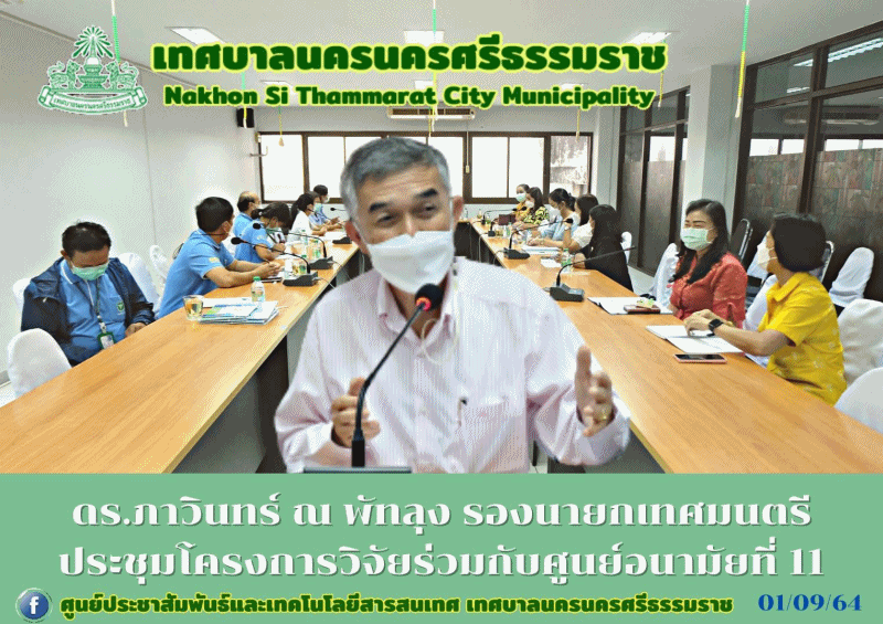 | วันพุธ ที่1 กันยายน 2564 เวลา 13.30 น. ณ ห้องประชุมสำนักการศึกษา ชั้น4 ดร.ภาวินทร์ ณ พัทลุง รองนายกเทศมนตรีนครนครศรีธรรมราช ร่วมมือกับศูนย์อนามัยที่ 11 นครศรีธรรมราช ประชุมโครงการวิจัยนวัตกรรมรูปแบบการส่งเสริมการเล่นเพื่อส่งเสริมพัฒนาการและทักษะเด็กไทยในศตวรรษที่ 21 โดยมีวัตถุประสงค์ เพื่อศึกษาประสิทธิผลของรูปแบบการเล่น ส่งเสริมพัฒนาการและทักษะเด็กปฐมวัยในครอบครัวและสถาบันพัฒนาเด็กปฐมวัย |