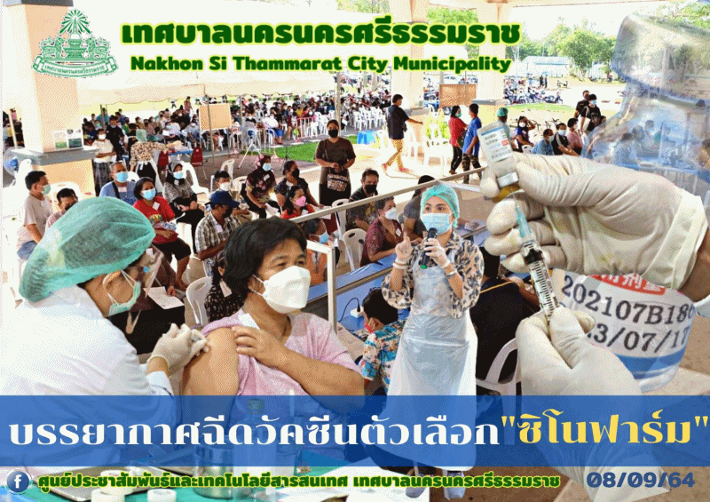 | เทศบาลนครนครศรีธรรมราช ให้บริการฉีดวัคซีนตัวเลือก “ซิโนฟาร์ม” |