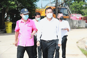| ดร.วงศ์วชิร โอวรารินท์ รองนายกเทศมนตรีนครนครศรีธรรมราช ลงพื้นที่ติดตามความคืบหน้าการขยายเส้นทางภายในบ่อขยะ |