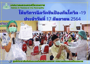 | เทศบาลนครนครศรีธรรมราช ให้บริการฉีดวัคซีนป้องกันโรคโควิด-19 สำหรับผู้ลงทะเบียนไว้แล้ว |