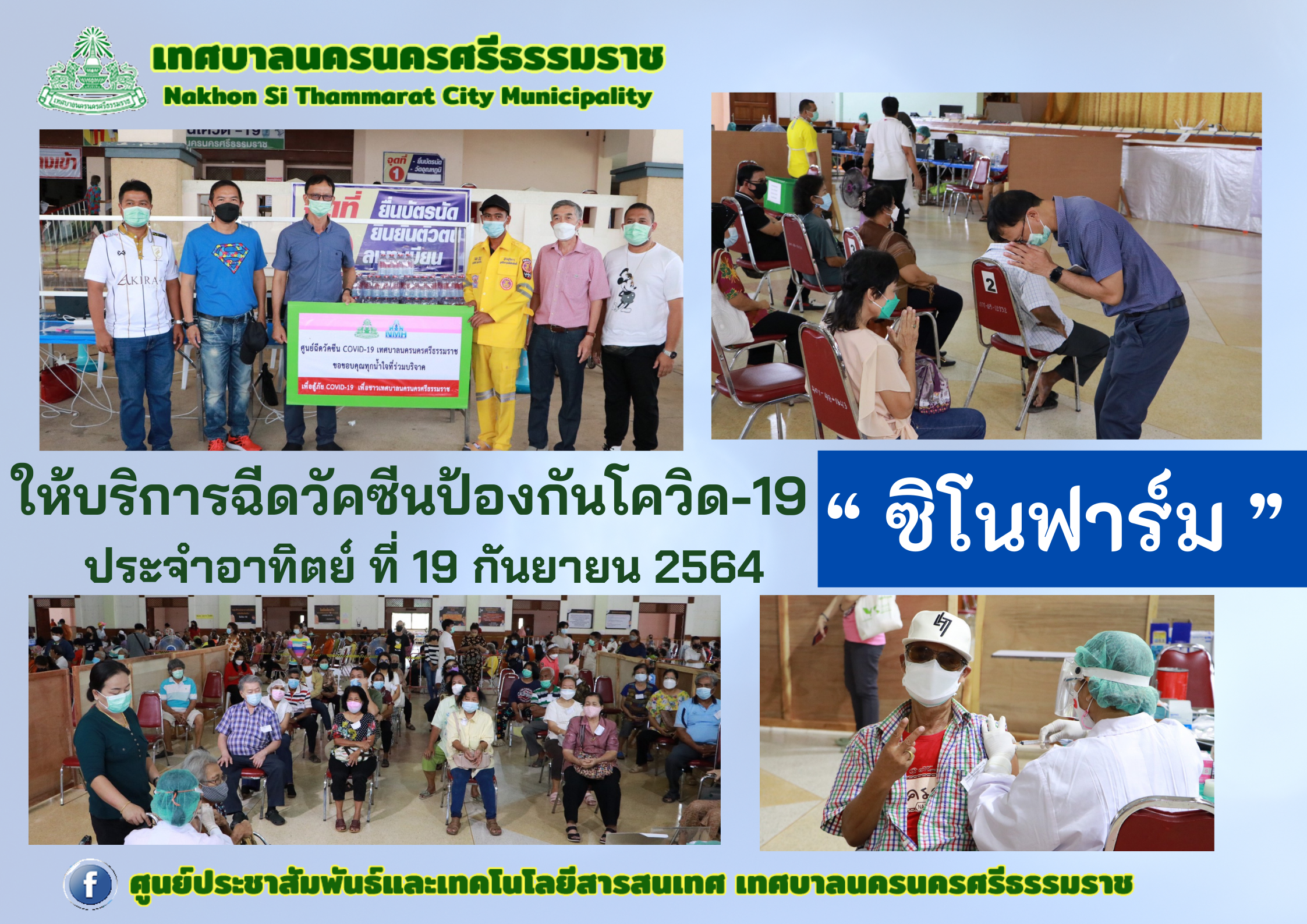 | เทศบาลนครนครศรีธรรมราช ให้บริการฉีดวัคซีนป้องกันโรคโควิด-19 สำหรับผู้ฉีดวัคซีนตัวเลือก“ซิโนฟาร์ม ” เข็มที่ 2 |
