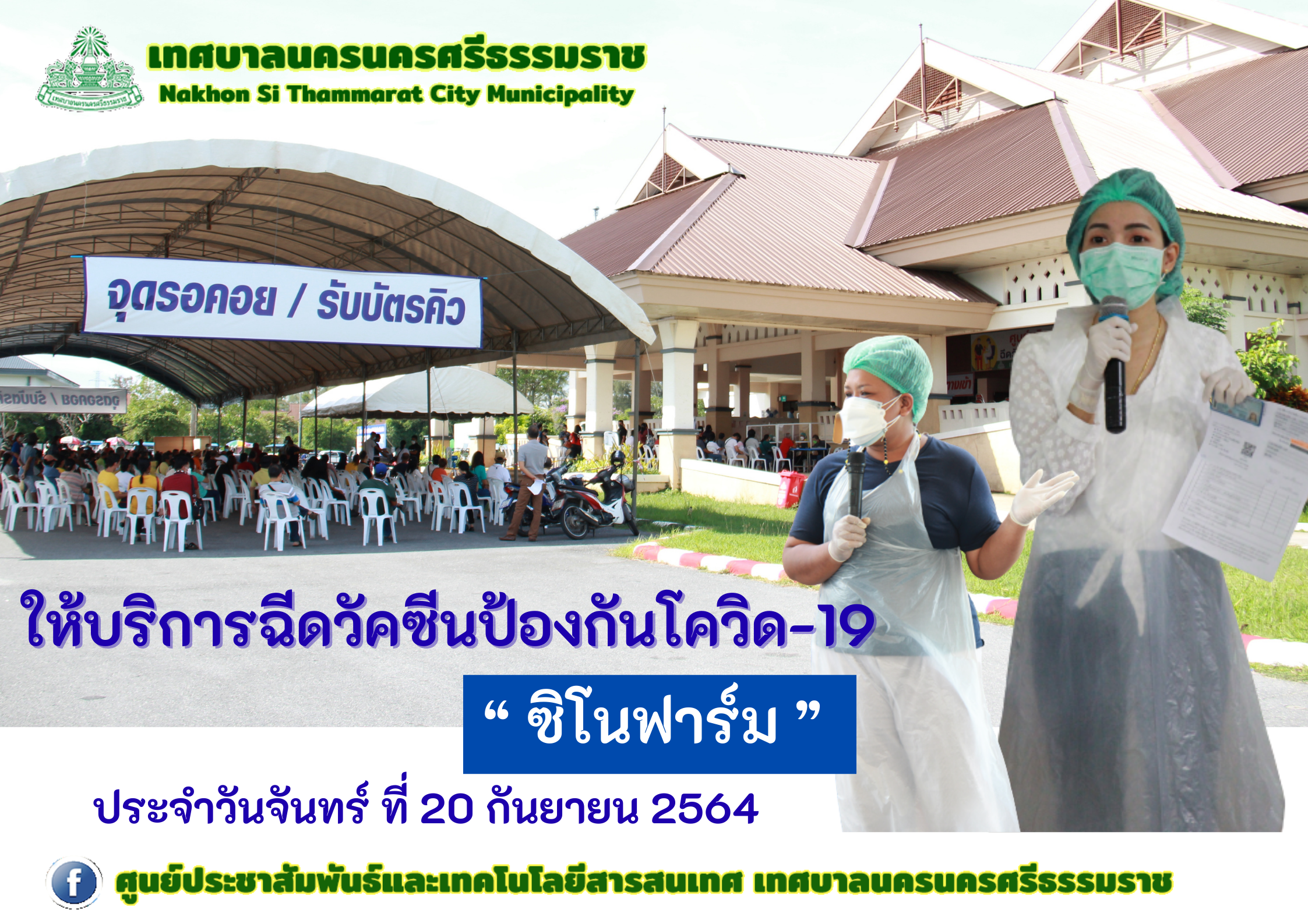 | เทศบาลนครนครศรีธรรมราช ให้บริการฉีดวัคซีนป้องกันโรคโควิด-19 สำหรับผู้ฉีดวัคซีนตัวเลือก“ซิโนฟาร์ม ” เข็มที่ 2 |