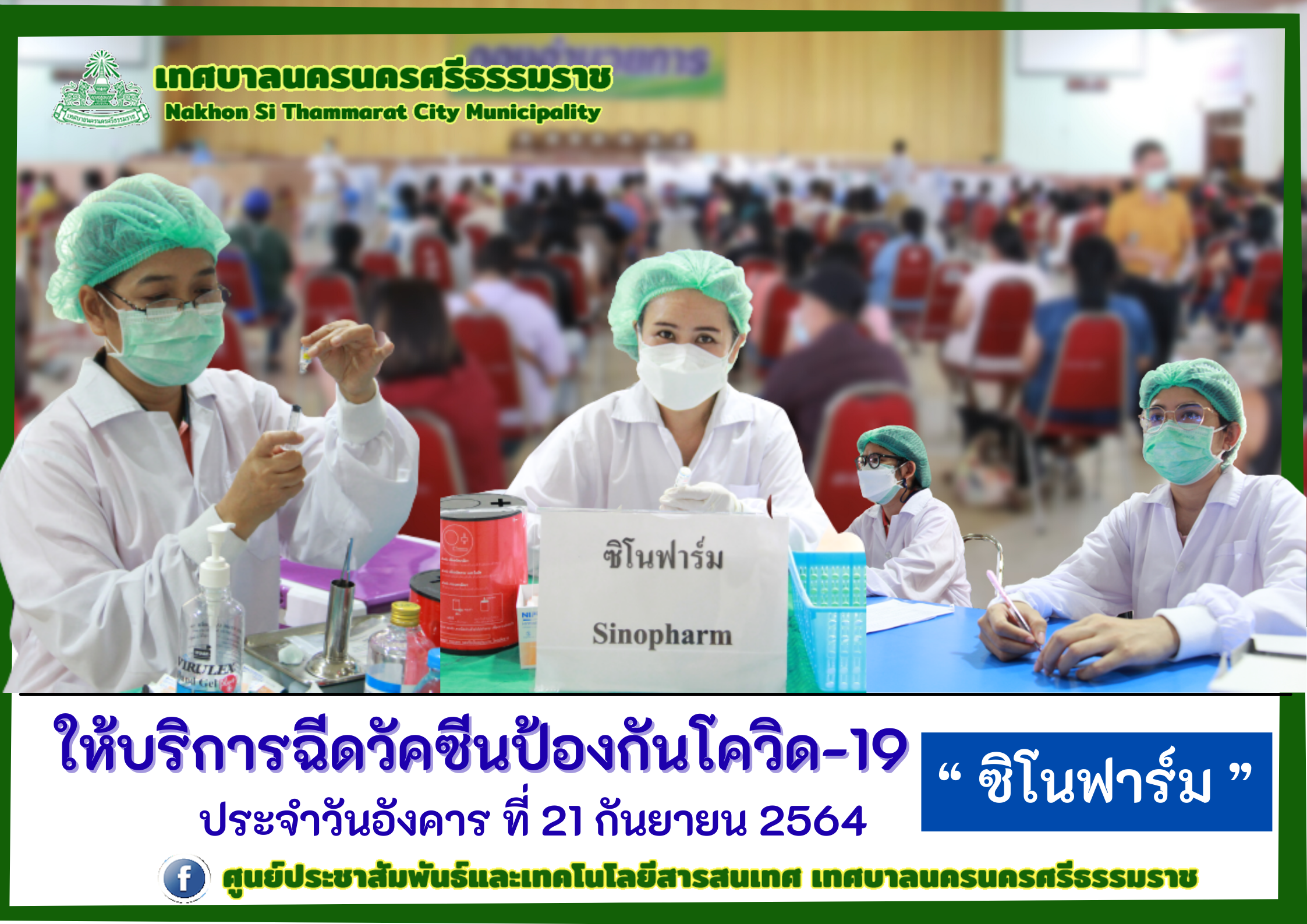 | เทศบาลนครนครศรีธรรมราช ให้บริการฉีดวัคซีนป้องกันโรคโควิด-19 สำหรับผู้ฉีดวัคซีนตัวเลือก“ซิโนฟาร์ม ” เข็มที่ 1 |