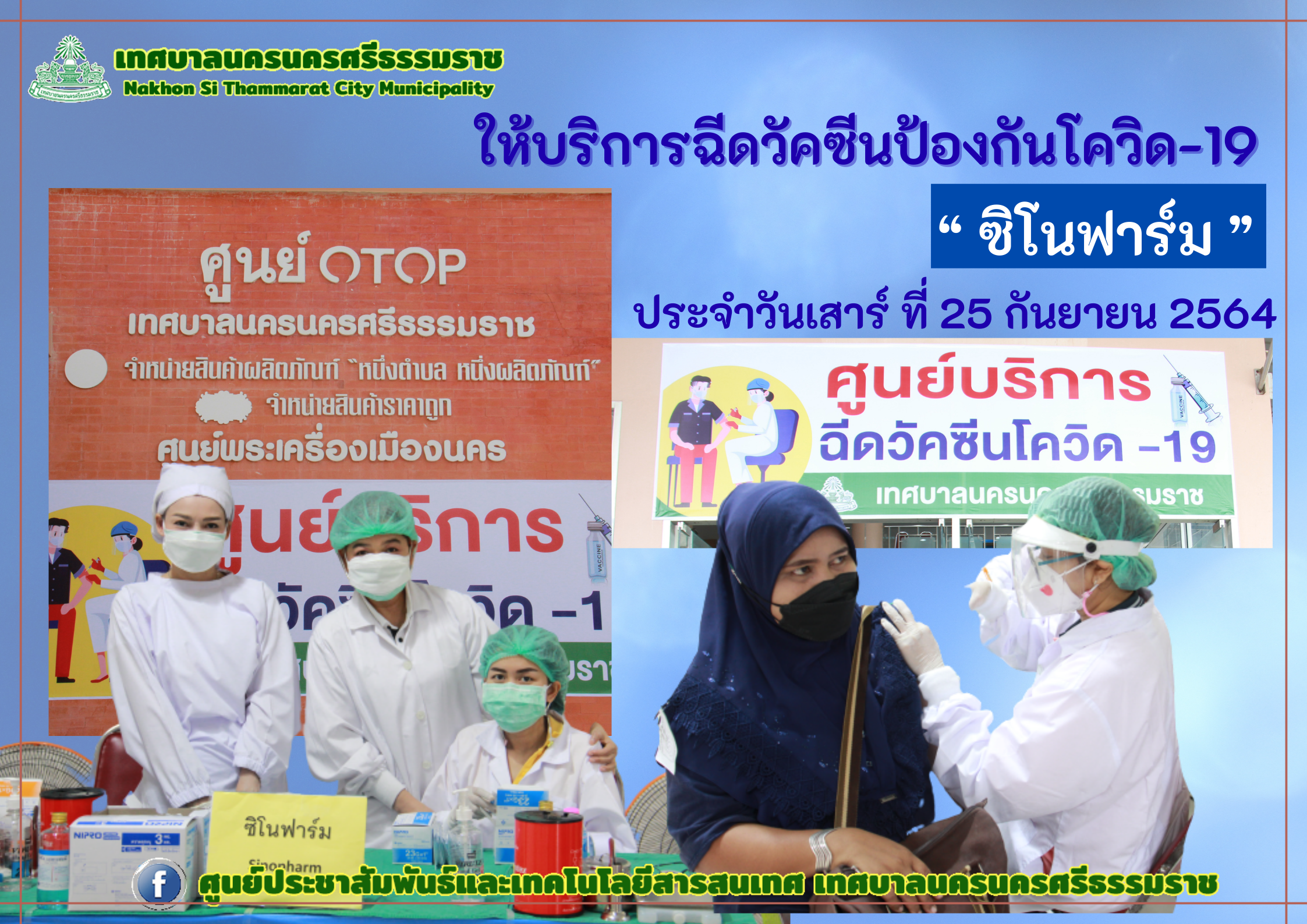 | เทศบาลนครนครศรีธรรมราช ให้บริการฉีดวัคซีนป้องกันโรคโควิด-19 สำหรับผู้ฉีดวัคซีนตัวเลือก“ซิโนฟาร์ม ” |