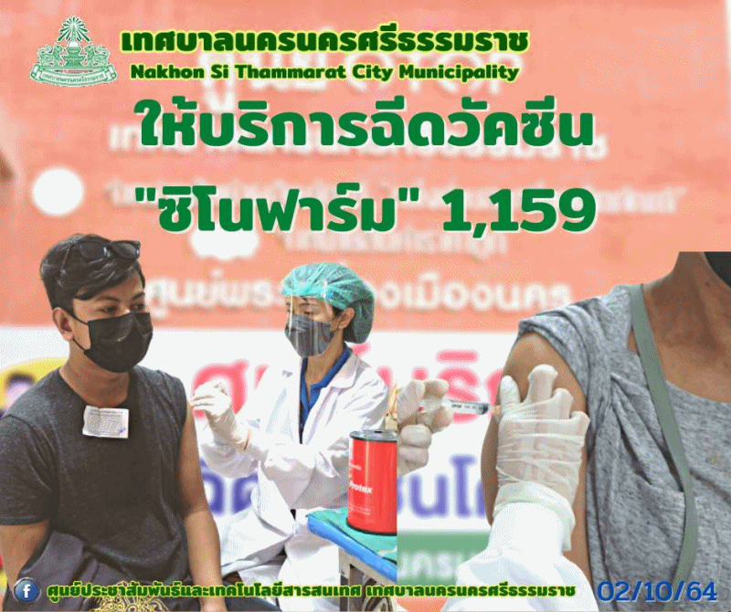 | เทศบาลนครนครศรีธรรมราช ให้บริการฉีดวัคซีนตัวเลือก “ซิโนฟาร์ม” เข็มที่1 และเข็มที่2 |
