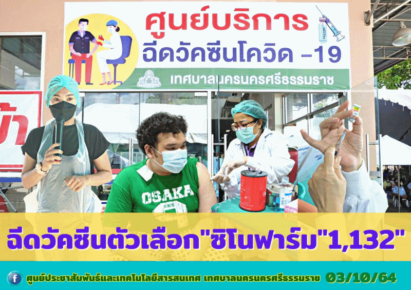 | เทศบาลนครนครศรีธรรมราช ให้บริการฉีดวัคซีนตัวเลือก “ซิโนฟาร์ม” เข็มที่1 และเข็มที่2 |