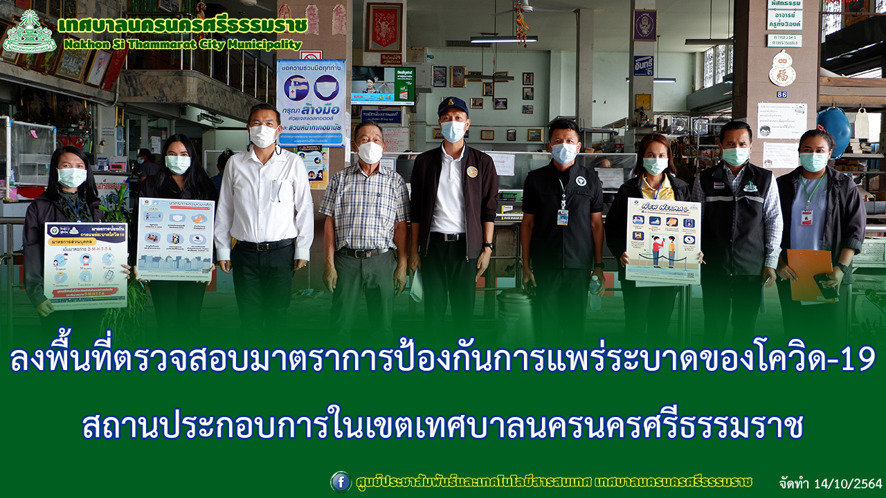 | ดร.วงศ์วชิร โอวรารินท์ รองนายกเทศมนตรีนครนครศรีธรรมราช ลงพื้นที่ตรวจสอบมาตรการการป้องกันการแพร่ระบาดของโควิด-19 ในสถานประกอบการในเขตเทศบาลนครนครศรีธรรมราช |