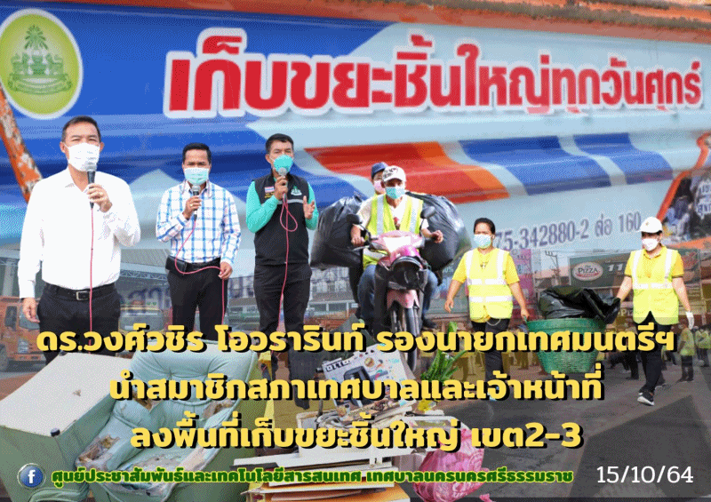 | วันศุกร์ ที่ 15 ตุลาคม   2564 เวลา  08.00-11.00 น. ดร.วงศ์วชิร โอวรารินท์ รองนายกเทศมนตรีนครนครศรีธรรมราช |