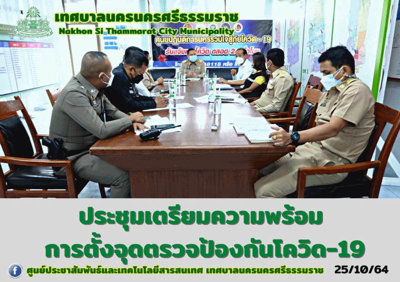 | เทศบาลนครนครศรีธรรมราช ประชุมเตรียมความพร้อมการจัดตั้งจุดตรวจป้องกันโควิด-19 |