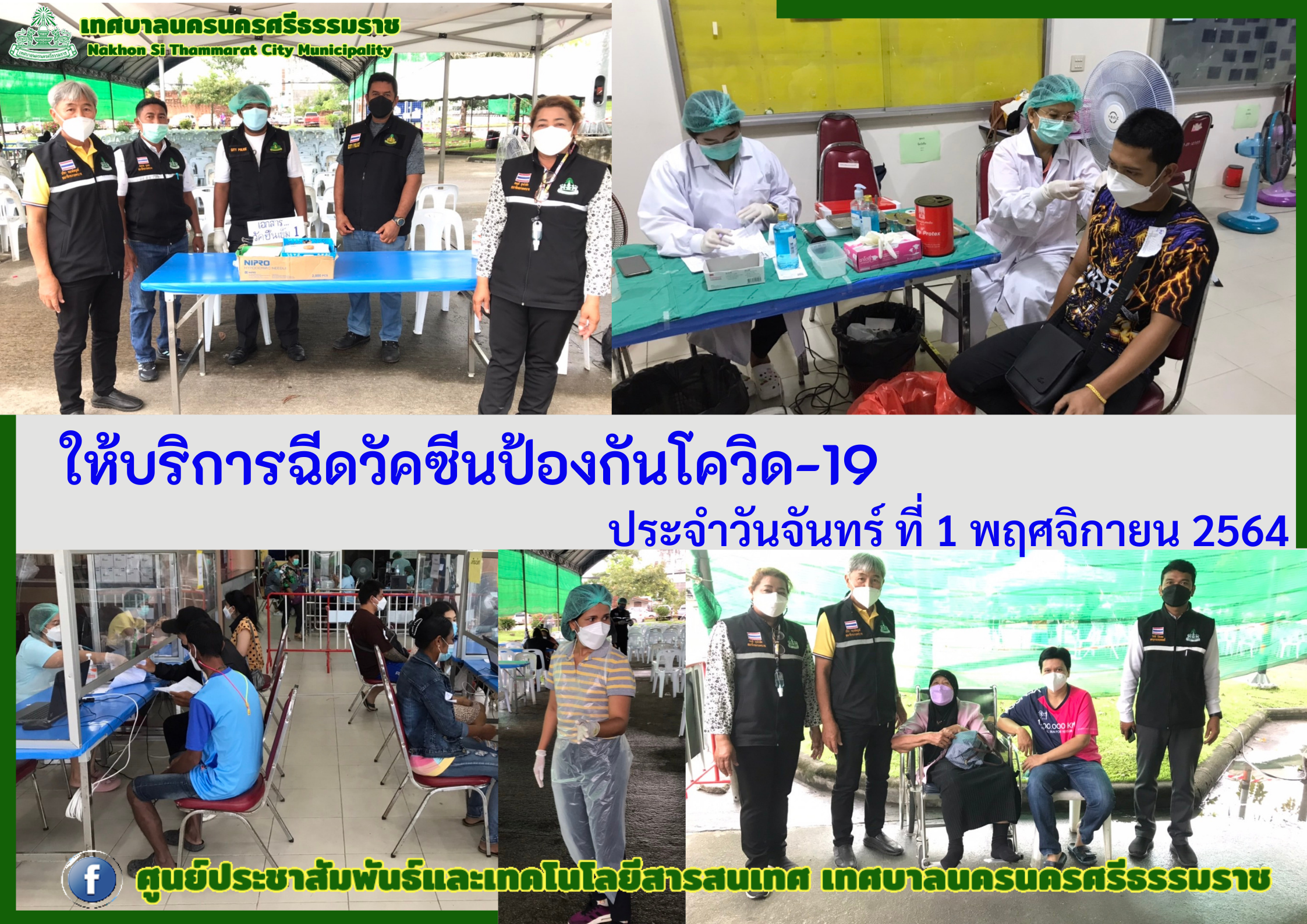 | เทศบาลนครนครศรีธรรมราช ให้บริการฉีดวัคซีนป้องกันโรคโควิด-19 ประจำวันจันทร์ ที่ 1 พฤศจิกายน 2564 |