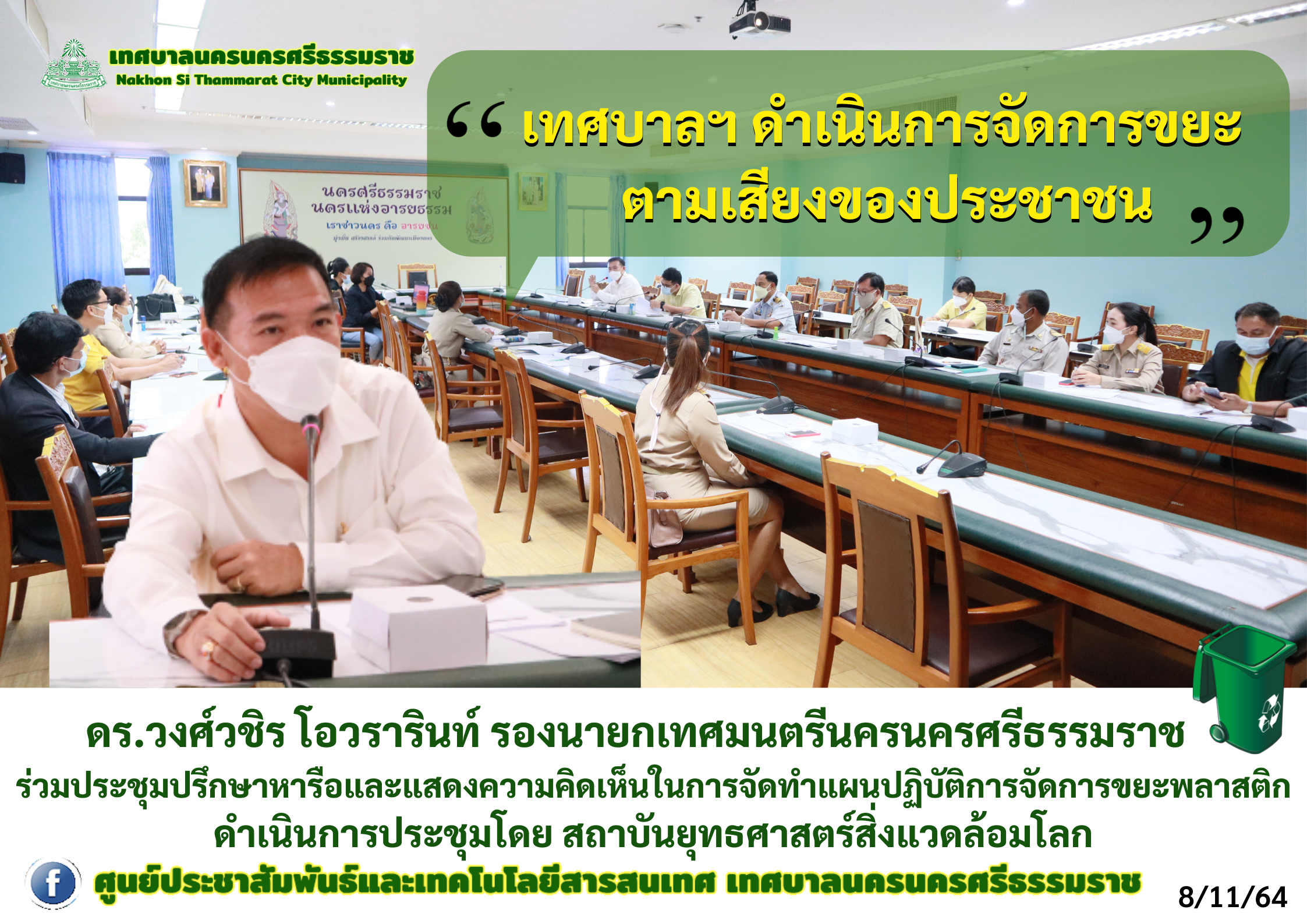 | เทศบาลนครนครศรีธรรมราช ร่วมประชุมปรึกษาหารือและแสดงความคิดเห็น ในการจัดทำแผนปฏิบัติการจัดการขยะพลาสติก |