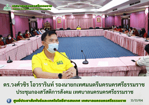 | รองนายกเทศมนตรีนครนครศรีธรรมราช ประชุมกองสวัสดิการสังคม เทศบาลนครนครศรีธรรมราช เกี่ยวกับแผนเตรียมการป้องกัน และแก้ปัญหาอุทกภัย วาตภัยและดินถล่มในพื้นที่ชุมชน ประจำปี 2564 |