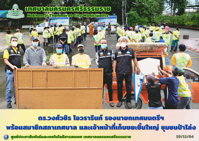 | ดร.วงศ์วชิร โอวรารินท์ รองนายกเทศมนตรีนครนครศรีธรรมราช นำสมาชิกสภาเทศบาล เขต3 และเจ้าหน้าที่กองสาธารณสุขและสิ่งแวดล้อม ลงพื้นที่เก็บขยะชิ้นใหญ่ ชุมชนป่าโล่ง |