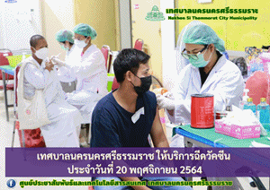 | เทศบาลนครนครศรีธรรมราช ให้บริการฉีดวัคซีนป้องกันโรคโควิด-19 ประจำวันเสาร์ ที่ 20 พฤศจิกายน พ.ศ. 2564 |