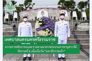 | นายกเทศมนตรีนครนครศรีธรรมราชเข้าร่วมพิธีถวายสักการะพระบรมราชานุสาวรีย์ รัชกาลที่ 6 เนื่องในวัน “มหาธีรราชเจ้า” |