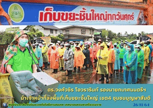 | วันศุกร์ ที่ 26 พฤศจิกายน 2564 เวลา 08.00-11.00 น. ดร.วงศ์วชิร โอวรารินท์ รองนายกเทศมนตรีนครนครศรีธรรมราช นำสมาชิกสภาเทศบาล เขต4 พร้อมเจ้าหน้าที่กองสาธารณสุขและสิ่งแวดล้อม ลงพื้นที่เก็บขยะชิ้นใหญ่ สิ่งของชำรุด และเศษวัสดุ บริเวณชุมชนบุญพาสันติ