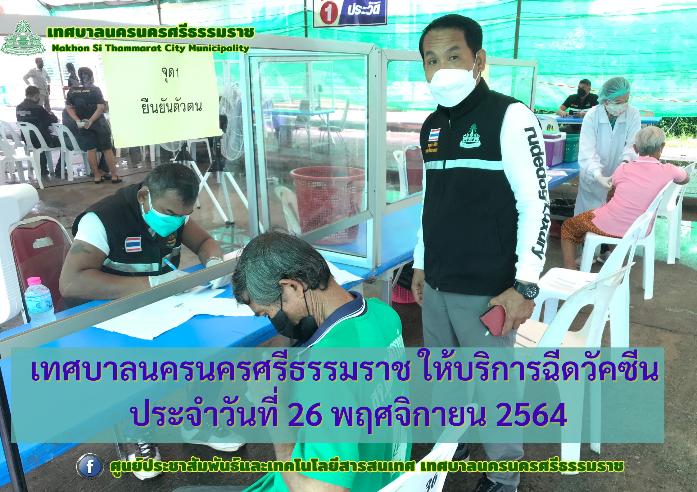| เทศบาลนครนครศรีธรรมราช ให้บริการฉีดวัคซีนป้องกันโรคโควิด-19 ประจำวันศุกร์ ที่ 26 พฤศจิกายน 2564 |