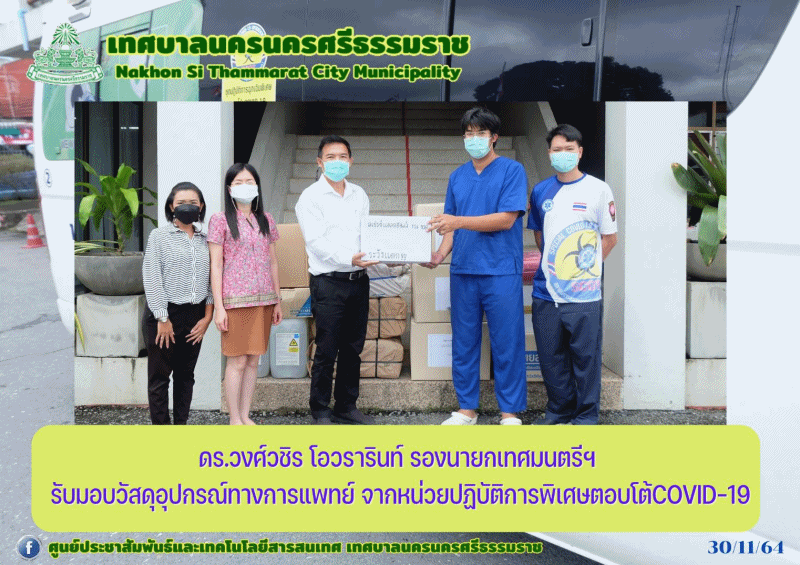 | ดร.ดร.วงศ์วชิร โอวรารินท์ รองนายกเทศมนตรีนครนครศรีธรรมราช รับมอบวัสดุอุปกรณ์ทางการแพทย์ |