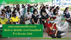 | เทศบาลนครนครศรีธรรมราช ให้บริการฉีดวัคซีนป้องกันโรคโควิด-19 ประจำวันวันพฤหัสบดีที่ 9 ธันวาคม พ.ศ. 2564 |
