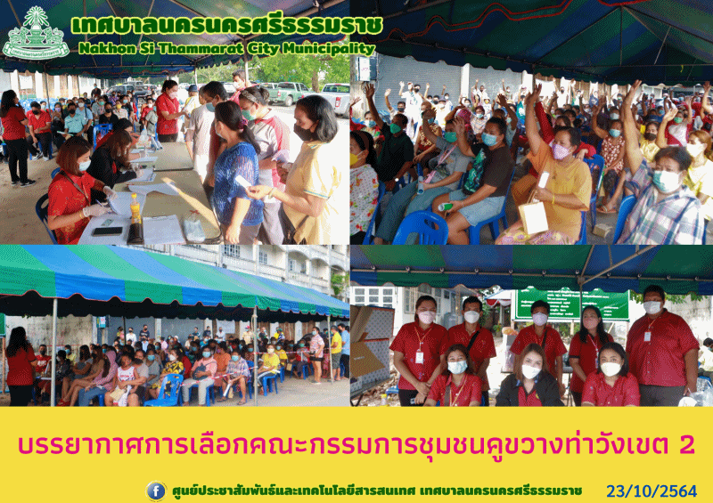 | กองสวัสดิการสังคม เทศบาลนครนครศรีธรรมราช ดำเนินการแผนปฏิบัติการ เลือกคณะกรรมการชุมชนเทศบาลนครนครศรีธรรมราช ณ ศูนย์สาธารณสุขคูขวาง พื้นที่ชุมชนคูขวางท่าวังเขต 2 |