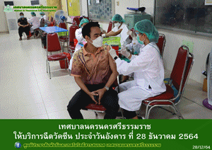 | เทศบาลนครนครศรีธรรมราช ให้บริการฉีดวัคซีนป้องกันโรคโควิด-19 ประจำวันอังคารที่ 28 ธันวาคม พ.ศ. 2564 |