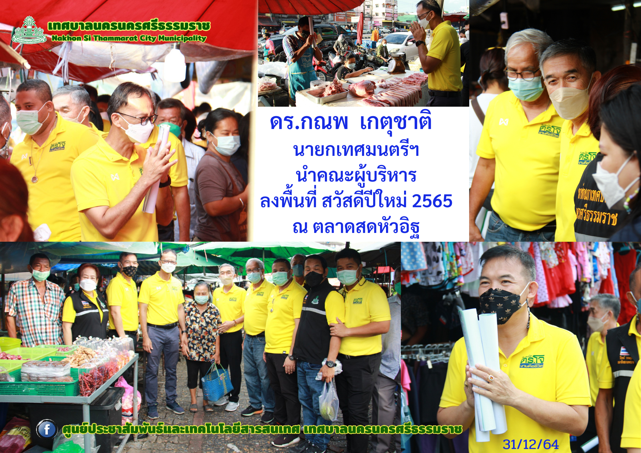 | ดร.กณพ เกตุชาติ นายกเทศมนตรีนครนครศรีธรรมราช นำคณะผู้บริหาร สมาชิกสภาเทศบาลนครนครศรีธรรมราช ลงพื้นที่ สวัสดีปีใหม่ 2565 |