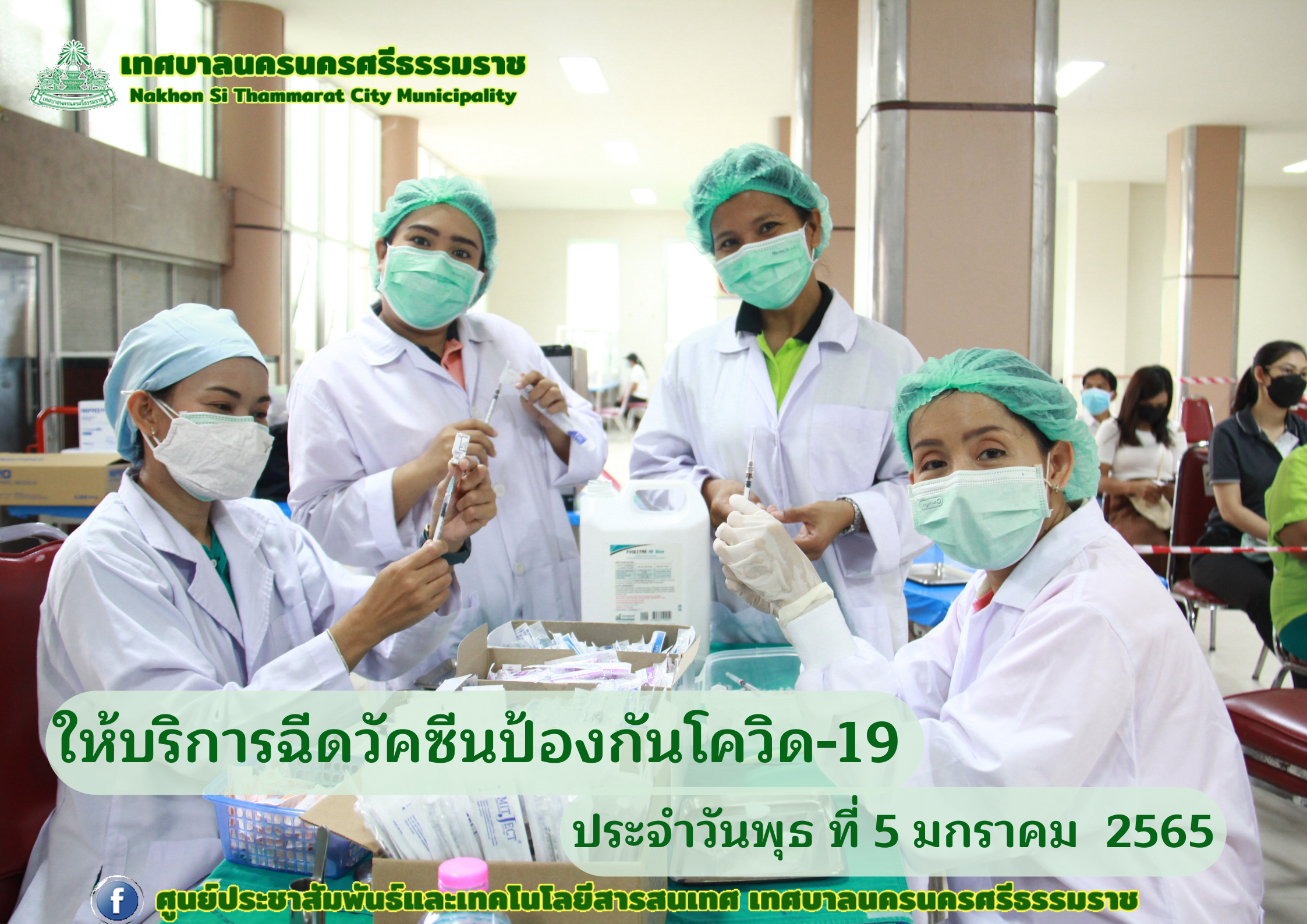 | เทศบาลนครนครศรีธรรมราช ให้บริการฉีดวัคซีนป้องกันโรคโควิด-19 ประจำวันพุธ ที่ 5 มกราคม 2565 |