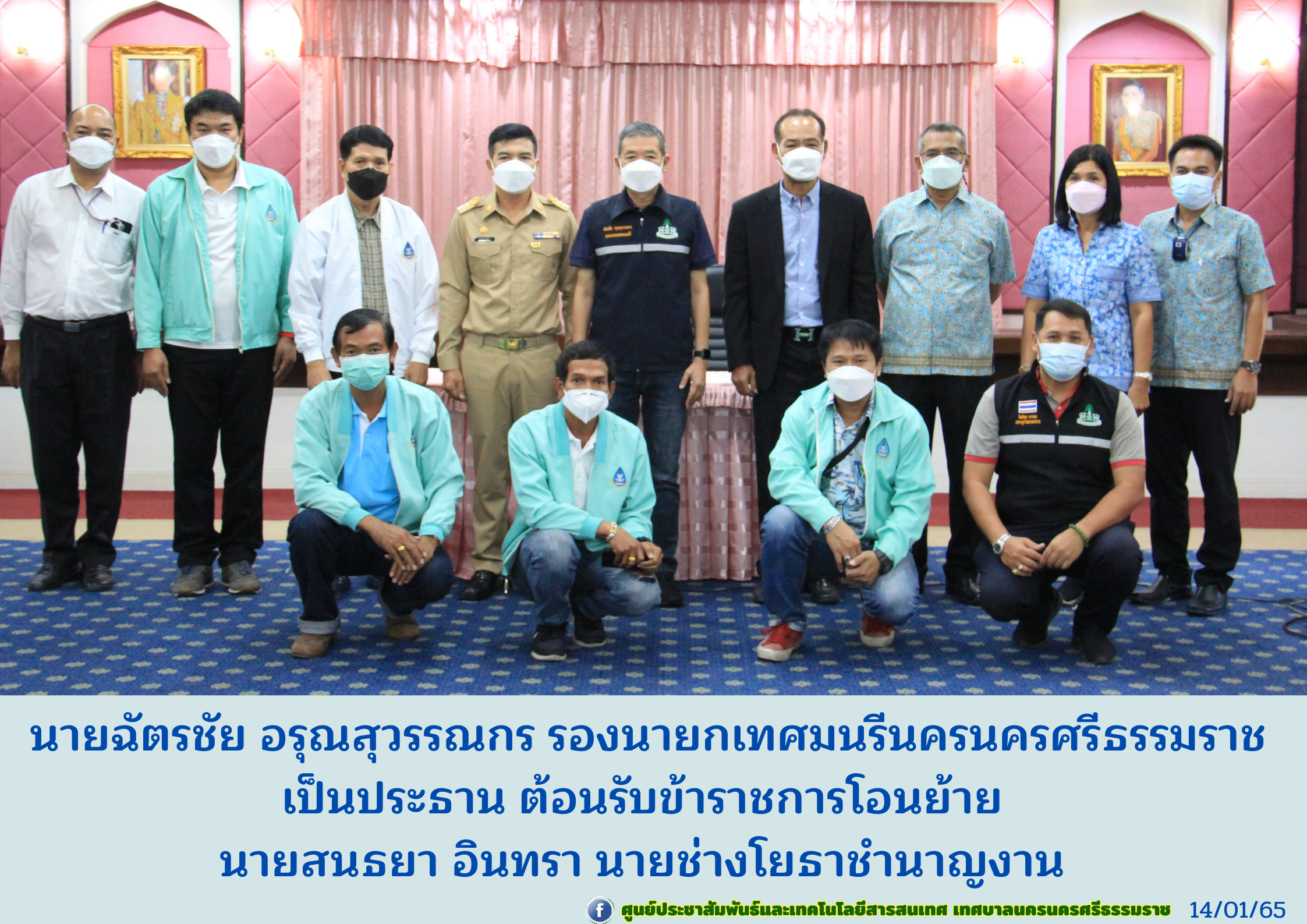| นายฉัตรชัย อรุณสุวรรณกร รองนายกเทศมนรีนครนครศรีธรรมราช เป็นประธาน ต้อนรับข้าราชการโอนย้าย นายสนธยา อินทรา นายช่างโยธาชำนาญงาน |