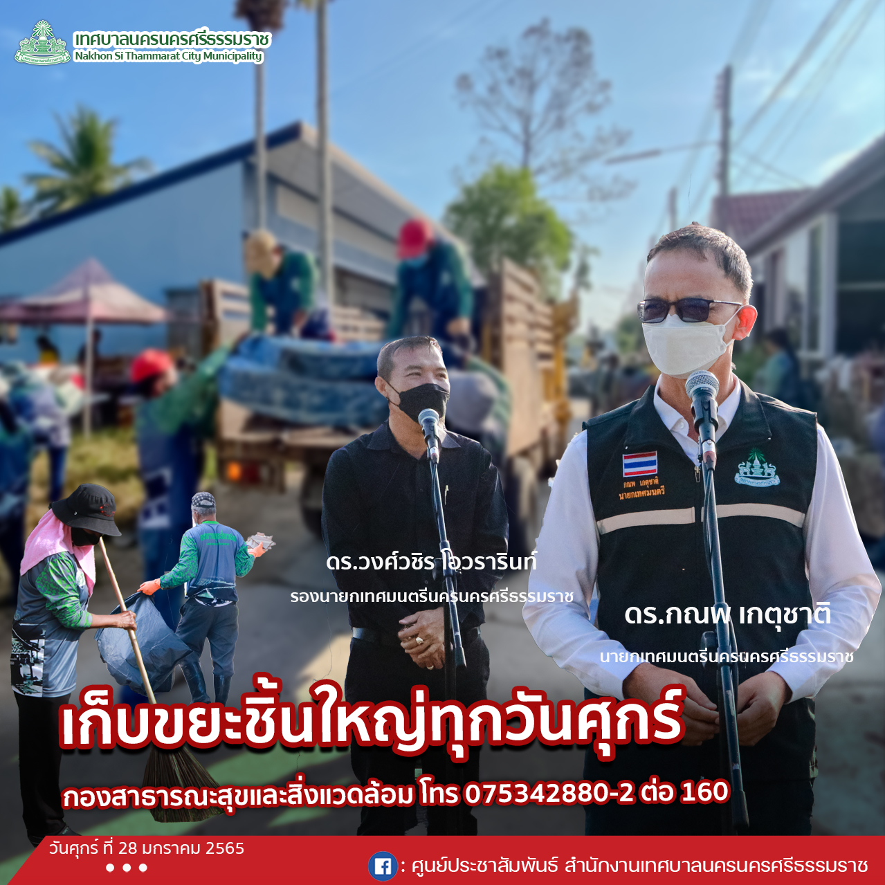 | เทศบาลนครนครศรีธรรมราช โดยกองสาธารณสุขและสิ่งแวดล้อม ลงพื้นที่เก็บขยะชิ้นใหญ่ทุกวันศุกร์ |