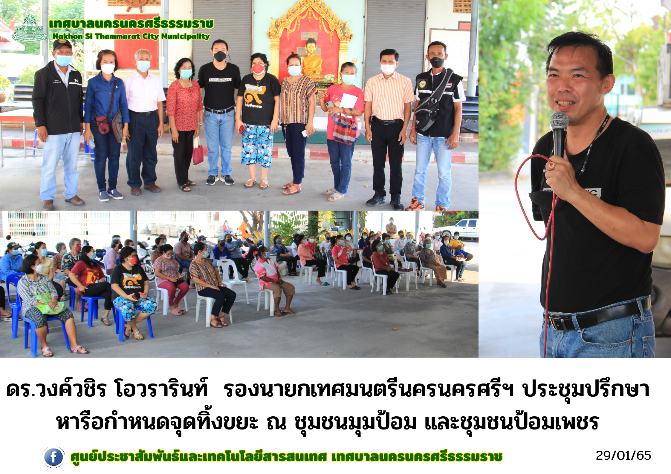 | ดร.วงค์วชิร โอวรารินท์ รองนายกเทศมนตรีนครนครศรีธรรมราช ประชุมปรึกษาหารือกำหนดจุดทิ้งขยะ ชุมชนมุมป้อม และชุมชนป้อมเพชร |