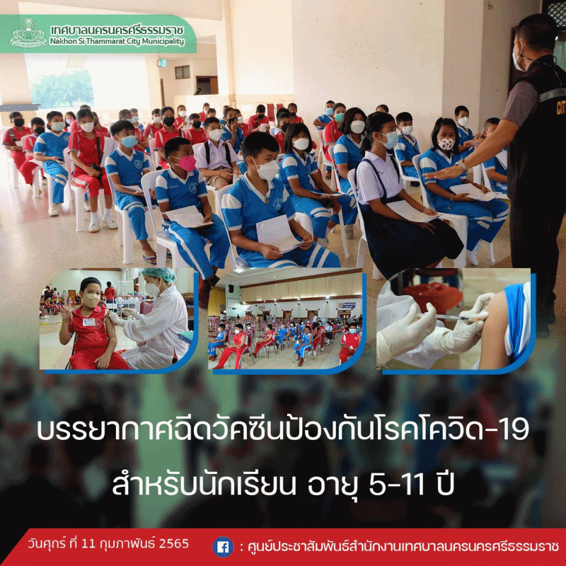 | เทศบาลนครนครศรีธรรมราช ให้บริการฉีดวัคซีนป้องกันโรคโควิด-19 สำหรับนักเรียน อายุ 5-11 ปี |
