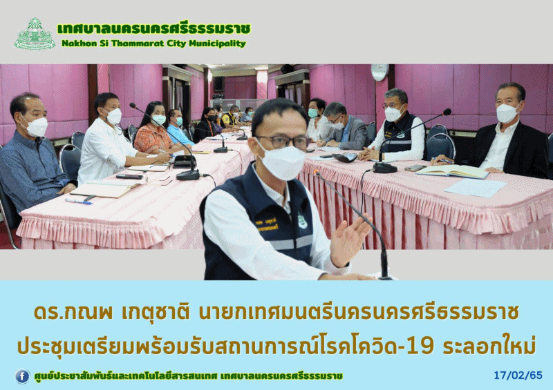 | ดร.กณพ เกตุชาติ นายกเทศมนตรีนครนครศรีธรรมราช ประธานการประชุมเตรียมพร้อมรับสถานการณ์โควิด-19ระลอกใหม่ |