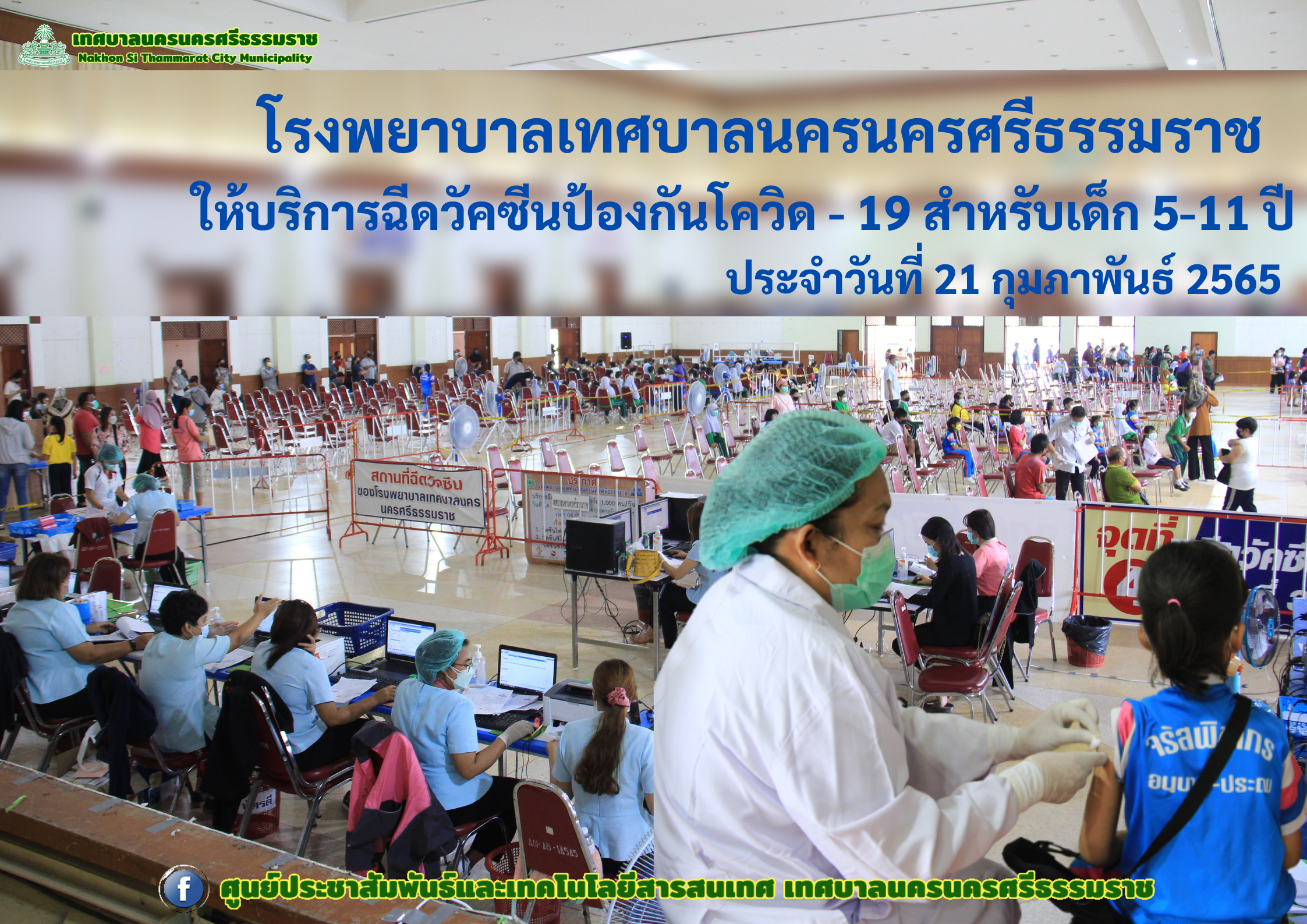 | โรงพยาบาลเทศบาลนครนครศรีธรรมราช ดำเนินการฉีดวัคซีนป้องกันโควิด-19 ประจำวันจันทร์ ที่ 21 กุมภาพันธ์ 2565 |